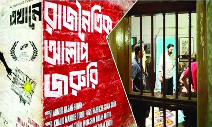 নতুন এক সিনেমায় অভিনয় করছেন ইমতিয়াজ বর্ষণ। যার নাম ‘এখানে রাজনৈতিক আলাপ জরুরি’। আহমেদ হাসান সানি পরিচালিত প্রথম সিনেমা এটি। কথা ছিল ছবিটি মুক্তি পাবে চলতি মাসেই। কিন্তু ২১ ডিসেম্বর এক সংবাদ সম্মেলনে পরিচালক জানান, ছবিটি মুক্তি পাচ্ছে না। দেশের সার্বিক অবস্থা বিবেচনা করে শেষ মুহূর্তে মুক্তির সিদ্ধান্ত থেকে সরে এলেন তারা। এফডিসিতে ঘোষণা করা হয় নতুন তারিখ। আগামী বছরের ২৬ জানুয়ারি সারাদেশের প্রেক্ষাগৃহে মুক্তি পাবে ‘এখানে রাজনৈতিক আলাপ জরুরি’। এ সিনেমায় যুগ যুগ ধরে চলে আসা রাজনৈতিক তাস্থিরতার নানা প্রসঙ্গ তুলে এনেছেন নির্মাতা। জানা গেছে, বর্ষণ অভিনীত নতুন ছবির পটভূমি ছাত্র-জনতার অভ্যুত্থান। তবে এর মধ্য দিয়ে বাংলাদেশের বিভিন্ন সময়ের ইতিহাসও তুলে ধরা হবে। কথা প্রসঙ্গে বর্ষণ বলেন, ‘আমরা প্রায় সময় বলে থাকি, রাজনৈতিক আলাপ নিষেধ। বিভিন্ন রেস্টুরেন্ট কিংবা নানা জায়গায় এটা লেখাও থাকে, রাজনৈতিক আলাপ নিষেধ। কিন্তু রাজনৈতিক আলাপটা আসলে জরুরি। মানুষ যত বেশি রাজনৈতিকভাবে সচেতন হবেন, ততই দেশ নিয়ে ভাবতে শিখবেন। আমরা এ ছবিতে রাজনৈতিক আলাপ যে জরুরি, সেটিই তুলে ধরার চেষ্টা করেছি।’ ইমতিয়াজ বর্ষণ ছাড়াও এখানে রাজনৈতিক আলাপ জরুরি’ সিনেমায় অভিনয় করেছেন আজাদ আবুল কালাম, তানভীর অপূর্ব, এ কে আজাদ সেতু, কেয়া আলম প্রমুখ। প্রযোজনা করেছেন খালিদ মাহমুদ তুর্য প্রমুখ।