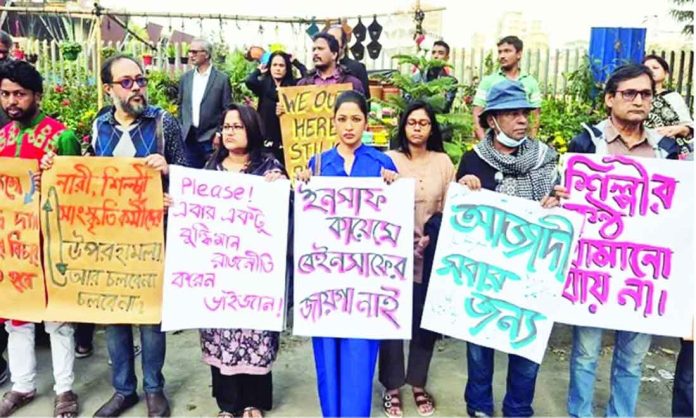 বিভিন্ন গণমাধ্যম, সাংস্কৃতিক সংগঠন ছায়ানট ও উদীচীর কার্যালয়ে সাম্প্রতিক হামলার প্রতিবাদে বিক্ষোভ সমাবেশ করেছে ‘নিপীড়নবিরোধী শিল্পী সমাজ’। ২৩ ডিসেম্বর বিকেল ৪টায় ধানমন্ডির সাতমসজিদ রোডে আবাহনী মাঠ সংলগ্ন এলাকায় এই অবস্থান কর্মসূচি পালন করা হয়। দৃশ্যমাধ্যম শিল্পী সমাজ ও নিপীড়নবিরোধী শিল্পী সমাজের আয়োজনে এই কর্মসূচিতে অংশ নেন দেশের বিশিষ্ট সংস্কৃতিসেবী, শিল্পী, সাহিত্যিক ও সাংবাদিকরা। সমাবেশে উপস্থিত ছিলেন ছায়ানটের সাধারণ সম্পাদক লুভা নাহিদ চৌধুরী, অভিনয়শিল্পী আজাদ আবুল কালাম, আজমেরী হক বাঁধন, বাকার বকুল, অরূপ রাহী, নির্মাতা