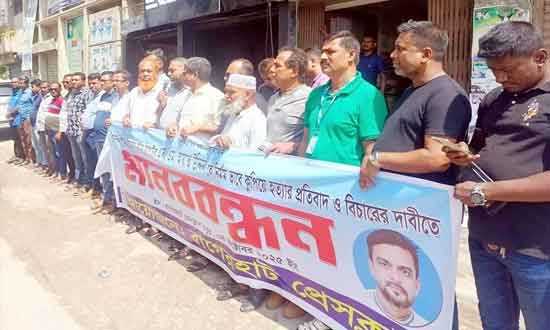 বাগেরহাট জেলা শহরে প্রকাশ্য জনসম্মুখে এএসএম হায়াত উদ্দিনকে (৪৩) ধারালো অস্ত্র দিয়ে কুপিয়ে ও হাতুড়ী দিয়ে পিটিয়ে হত্যার ঘটনায় হত্যাকারীদের গ্রেপ্তারের দাবিতে প্রেসক্লাবের সামনে মানববন্ধন কর্মসূচি পালন করা হয়েছে।