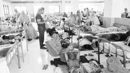 জয়পুরহাট জেনারেল হাসপাতালে ডায়রিয়ায় আক্রান্ত হয়ে ৮দিনে প্রায় ৬শ জন ভর্তি হয়েছে। বৃহস্পতিবার থেকে শুক্রবার সকাল ভর্তি হয়েছে ৬০ জন। হঠাৎ ডায়রিয়া প্রকব বাড়ায় রোগীর সেবা দিতে হিমশিম খেতে হচ্ছে চিকিৎসক ও নার্সদের। শুক্রবার হাসপাতালে গিয়ো দেখা গেছে, ওয়ার্ডে ঢুকেই দেখা যায় ডায়রিয়ায় আক্রান্ত রোগীরা স্থান সংকুলান না হওয়ায় করিডোর ও মেঝেতে বিছানা পেতে গদা-গদি করে শুয়ে আছে রোগীরা। সেখানেই রোগীদের স্যালাইন দিয়ে রাখা হয়েছে। জয়পুরহাট পৌরসভার থানাপাড়া রোগী বেলাল বলেন, বুধবার সন্ধ্যায় তাঁর স্ত্রীর বমি ও পাতলা পায়খানা শুরু হয়। সঙ্গে সঙ্গেহাসপাতালে নিয়ে আসেন। বেড না থাকায় রোগীকে নিয়ে বারান্দায় বিছানা পেতে আছি।