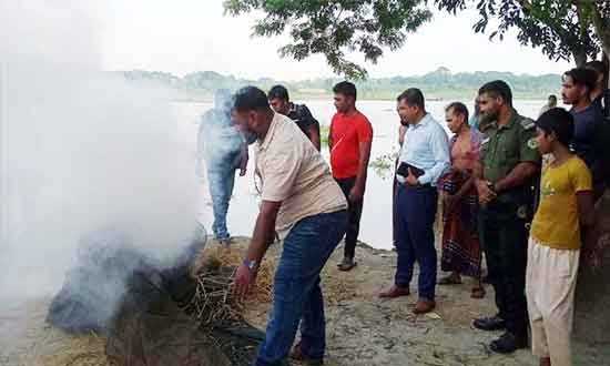 অভিযানে নেতৃত্ব দেন উপজেলা নির্বাহী কর্মকর্তা ও নির্বাহী ম্যাজিস্ট্রেট শ্যামানন্দ কুন্ডু। এ অভিযানে প্রায় ৪০০ মিটার নিষিদ্ধ চায়না দুয়ারী জাল জব্দ করে আগুনে পুড়িয়ে ধ্বংস করা হয়। উপজেলা নির্বাহী কর্মকর্তা শ্যামানন্দ কুন্ডু বলেন, নিষিদ্ধ চায়না দুয়ারী জাল দিয়ে ছোট-বড় সব ধরনের দেশিয় মাছ শিকার করা হয়। যা ভবিষ্যতে মাছের প্রজনন ও প্রজাতি টিকিয়ে রাখতে মারাত্মক হুমকি সৃষ্টি করে। মৎস্য সম্পদ রক্ষায় ও উৎপাদন বৃদ্ধির স্বার্থে এ ধরনের অভিযান অব্যাহত থাকবে।