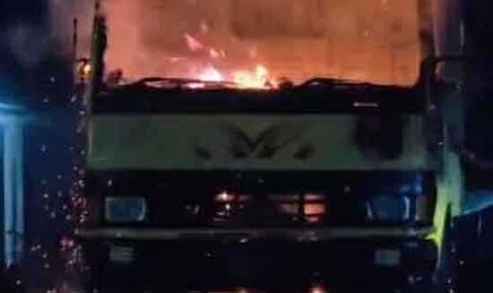 ময়মনসিংহে দাঁড়িয়ে থাকা কাভার্ড ভ্যানে আগুন
