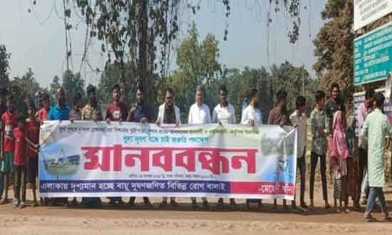 ধুলা দুষণের প্রতিবাদে মানববন্ধন