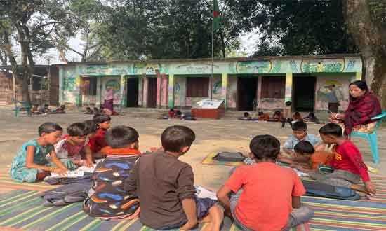 রোববার, (৩০ নভেম্বর ২০২৫) সকালে নীলফামারীর কিশোরগঞ্জের দক্ষিণ মেলাবর সরকারি প্রাথমিক বিদ্যালয়ে গিয়ে এমন চিত্র দেখা যায়।