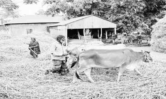 নবান্ন তখন শুধু একটি দিন ছিল না, ছিল পৌষ মাস পর্যন্ত বিস্তৃত এক আনন্দযজ্ঞ। ঘরে ঘরে নতুন খেজুরের রসের সঙ্গে গাভি বা মহিষের ঘন দুধ মিশিয়ে তৈরি হতো দুধের পিঠা, ভাপা, পাকান, কুশলি, পাটিসাপটার মতো রসনা বিলাসী সব আয়োজন। রান্না হতো নতুন চাল-ডালের খিচুড়ি আর পাটালি গুড়ের পায়েস। ধনী-গরিব, ধর্ম-বর্ণ নির্বিশেষে সবাই কলাপাতা বিছিয়ে একসঙ্গে বসে সেই খাবার খেতেন। উৎসবের রঙ ছড়াত গ্রামের বাড়িগুলি দিনের আলোয় লাঠি খেলা, পুঁথিপাঠ, সাঁতার আর হাঁড়ি ভাঙার মতো গ্রামীণ খেলাধুলায় মুখর থাকত । আর রাতের নিস্তব্ধতা ভেঙে দূর থেকে ভেসে আসত কবিগান, জারিগান আর যাত্রাপালার সুর। নবান্ন ছিল একাধারে ফসল, সংস্কৃতি আর সামাজিক ঐক্যের এক অপূর্ব মেলবন্ধন। আজকের সেই প্রাণবন্ত অনুষ্ঠানগুলি কেবলই ইতিহাস। উচ্চ ফলনশীল (উফশী) জাতের দাপটে হারিয়ে গেছে সেই সুগন্ধি দেশি ধান। ট্রাক্টর ও হারভেস্টারের যান্ত্রিক শব্দে চাপা পড়েছে ধান মাড়াইয়ের লোকগান। কৃষিকাজ এখন আর উৎসব নয়, নিছকই এক বাণিজ্যিক প্রক্রিয়া। বহু কৃষক এখন আর মাটির সঙ্গে বাঁধা নেই।