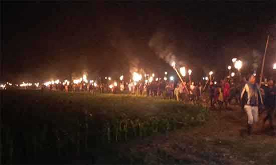 এতে ক্ষিপ্ত হয়ে ওঠে ডিমলা, ডোমার ও জলঢাকা এই তিন উপজেলার বুড়ি তিস্তা এলাকার পাঁচটি মৌজার প্রায় ৭৫০টি পরিবারে বসবাসরত তিন হাজারেরও বেশি মানুষ। নদী খননের সরকারি সিদ্ধান্তের প্রতিবাদে শুক্রবার,(০৫ ডিসেম্বর ২০২৫) সন্ধ্যার পর নীলফামারী জেলার ডিমলা সদর ইউনিয়নের বুড়ি তিস্তা ব্যারেজ এলাকার উজান কুটির ডাঙ্গায় ওই তিন উপজেলার পাঁচ গ্রামের প্রায় তিন হাজার মানুষ মশাল মিছিল বের করে প্রতিবাদ জানায়। মিছিলে কিশোর, নারী ও বৃদ্ধসহ সর্বস্তরের মানুষ অংশ নেন।
