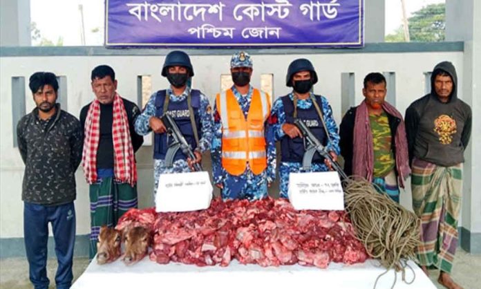 বাংলাদেশ কোষ্টগার্ডের বাগেরহাটের মোংলাস্থ পশ্চিমজোনের সদস্যদের অভিযানে ৭২ কেজি হরিনের মাংসসহ ৪ জন চোরা শিকারী আটক হয়েছে। এ সময় হরিন শিকারের ফাঁদ জব্দকরা হয়।