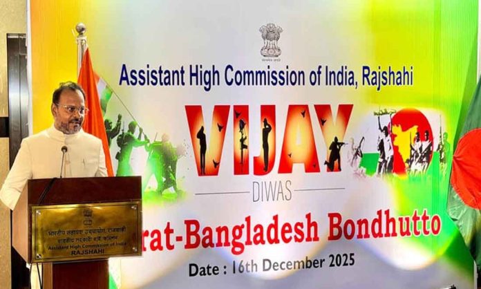 গতকাল মঙ্গলবার বিকালে মহানগরীর ভদ্রা এলাকায় রাজশাহীস্থ ভারতীয় সহকারী হাই কমিশনে মহান বিজয় দিবস উপলক্ষে ‘বাংলাদেশ-ভারত বন্ধুত্ব’ শিরোনামে আয়োজিত অনুষ্ঠানে প্রধান অতিথির বক্তব্যে তিনি এসব কথা বলেন।