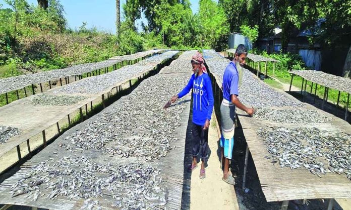 তবে চলতি বর্ষা মৌসুমে নদীতে পানি কম থাকায় মাছের স্বাভাবিক প্রজনন ব্যাহত হয়েছে। চাহিদা অনুযায়ী মাছ না পাওয়ায় পুঁটি, খলিশা ও টাকি মাছ কেজিপ্রতি ৪০-৫০ টাকা বেশি দামে কিনতে হচ্ছে। এতে শুটকি উৎপাদনের খরচ বেড়েছে এবং অনেক চাতাল এখনো ফাঁকা পড়ে রয়েছে।