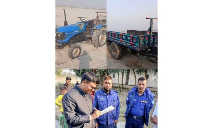 নীলফামারীর ডিমলা উপজেলায় অবৈধভাবে বালু উত্তোলন ও পরিবহনের বিরুদ্ধে ভ্রাম্যমাণ আদালতের অভিযান পরিচালিত হয়েছে। অভিযানে ২টি ট্রাক্টর জব্দ করা হয়েছে এবং একজনকে অর্থদ- প্রদান করা হয়েছে।