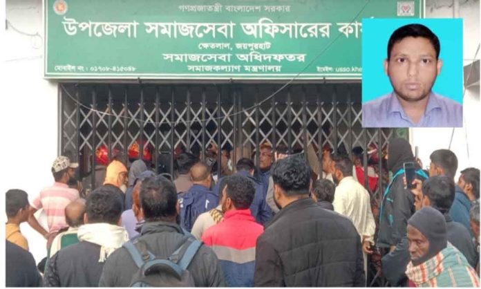 জয়পুরহাটের ক্ষেতলাল উপজেলা সমাজসেবা কার্যালয়ের অফিস কক্ষে ৪র্থ শ্রেণির কর্মচারী (অফিস সহায়ক) গামছা দিয়ে সিলিং ফ্যানের সঙ্গে গলায় ফাঁসরত অবস্থায় মরদেহ উদ্ধার করা হয়েছে। গতকাল শনিবার বেলা ১১টায় এ ঘটনা ঘটেছে। এ বিষয়টি নিশ্চিত করেছেন ক্ষেতলাল থানার ভারপ্রাপ্ত কর্মকর্তা (ওসি) নুরে আলম সিদ্দিকী।