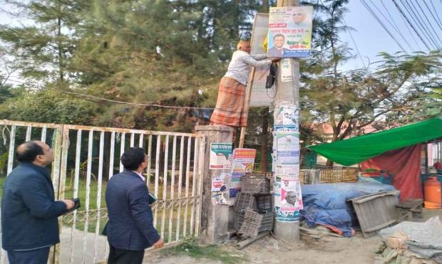 নোয়াখালীর বেগমগঞ্জে নির্বাচনী আচরণবিধি লঙ্ঘন করে টাঙানো বিভিন্ন রাজনৈতিক ও নির্বাচনী ব্যানার অপসারণ র্কাযক্রম পরচিালনা করা হয়েছে। উপজেলায় নির্বাচনী আচরণবিধি (আর,পি.ও) অনুসরণে বিভিন্ন রাজনৈতিক দলের ও নির্বাচনী ব্যানার অপসারণ র্কাযক্রম পরচিালনা করা হয়। গতকাল রোববার বিকালে বেগমগঞ্জ উপজেলা সহকারী কমশিনার (ভূমি) ও নির্বাহী ম্যাজিস্ট্রেট মোহাম্মদ শাদাত হেসেনের নেতৃত্বে পরিচালিত এ অভিযানে উপজেলার প্রধান সড়কসহ একলাশপুর ইউনিয়নের উকিল সড়ক, একলাশপুর বাজার, মকবুল সড়ক, স্কুল মোড় ও ভিআইপি রোডের আশপাশের এলাকায় এ অভিযান চালানো হয়। অভিযানে নির্বাচনী আচরণবিধি লঙ্ঘন করে টাঙানো বিভিন্ন রাজনৈতিকি ও নির্বাচনী ব্যানার, পোস্টার অপসারণ করা হয়।