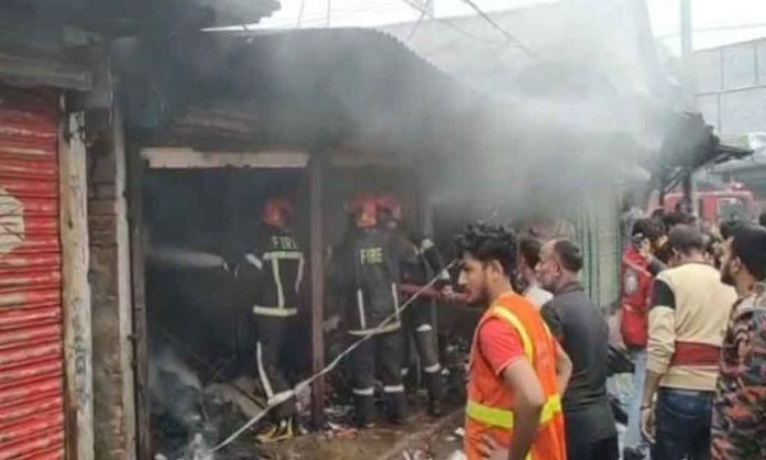 জানা গেছে, সোনারগাঁ উপজেলার মোগরাপাড়া ইউপির বাড়িমজলিস এলাকায় উপজেলা সড়কের পাশে স্থানীয় মোতালেব মিয়ার ফার্নিচার মার্কেটে সোমবার বিকেলে হঠাৎ আগুন লেগে যায়। মুহুর্তেই আগুনের শিখা দেখতে পায় স্থানীয়রা। পরে সেখানে চারপাশ থেকে পানি দেয়ার চেস্টা করে আগুন নেভাতে ব্যর্থ হন তারা। খবর পেয়ে সোনারগাঁ ফায়ার সার্ভিস ও সিভিল ডিফেন্সের একটি ইউনিট প্রায় দেড় ঘন্টা চেস্টার পর আগুন নিয়ন্ত্রণে আনে। মার্কেটের মালিক মোতালেব মিয়ার ছেলে ফার্নিচার ব্যবসায়ী মামুন মিয়া জানান, তার কর্মচারীরা দোকানে ফার্নিচার তৈরীর কাজ করছিল। হঠাৎ আগুনের তাপ অনুভব করে দেখতে পান অন্যান্য দোকানিরা আগুন বলে চিৎকার করছে। এসময় মার্কেটের সবাই মিলে আগুন নেভানোর চেস্টা করে ব্যর্থ হয়। পরে ফায়ার সার্ভিস গিয়ে আগুন নিয়ন্ত্রণে আনে। আগুনে মার্কেটের ফানির্চার ও মুদিমনোহরিসহ ১২ টি দোকান ও প্রায় অর্ধকোটি টাকার মালামাল পুড়ে যায়। সোনারগাঁ ফায়ার সার্ভিস ও সিভিল ডিফেন্সের উপ পরিচালক ওসমান গনি জানান, ফার্নিচার মার্কেটটি টিনের তৈরী হওয়ায় আগুন দ্রুত ছড়িয়ে পড়ে। প্রায় দেড় ঘন্টা পর আগুন নিয়ন্ত্রণে আসে। ধারনা করা হচ্ছে বৈদ্যুতিক সর্টসার্কিট থেকে আগুনের সূত্রপাত। ক্ষতিগ্রস্থরা হিসেব করে বলতে পারবে তাদের সঠিক ক্ষতির পরিমান কত। ফায়ার সার্ভিসের পাশাপাশি থানা পুলিশও সহযোগিতা করেছে ব্যবসায়ীদের মালামাল রক্ষায়।