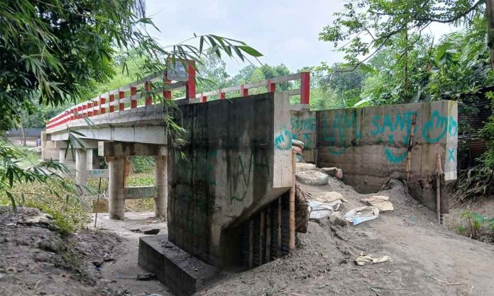 সেতু নির্মাণকারী ঠিকাদারী প্রতিষ্ঠান প্রত্যুষ বিল্ডার্সের কর্ণধার প্রসেনজিৎ ধর জানান, সেতুটি নির্মাণের সিডিউল অনুয়ায়ী তারা কাজ সম্পূর্ণ বাস্তবায়ন করেছে। উপজেলা পরিষদকে সেতুটি বুঝিয়ে দিয়ে তারা বিলের টাকা তুলে নিয়েছেন। সেতুর ঢালে সংযোগ সড়ক নির্মাণের বিষয়ে সিডিউলে কোনো উল্লেখ ছিল না।