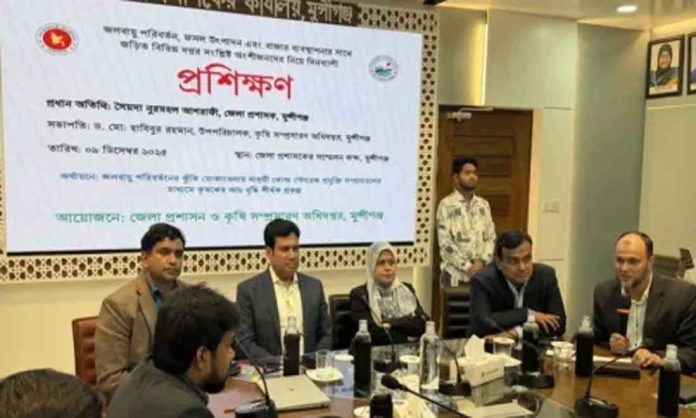 মুন্সীগঞ্জ জেলা প্রশাসকের সম্মেলন কক্ষে সম্প্রতি জলবায়ু পরিবর্তন, ফল উৎপাদন ও বাজার ব্যবস্থাপনা শীর্ষক দিনব্যাপী প্রশিক্ষণ অনুষ্ঠিত হয়েছে। জেলা প্রশাসন ও কৃষি সম্প্রসারণ অধিদপ্তর এ প্রশিক্ষণের আয়োজন করে।
