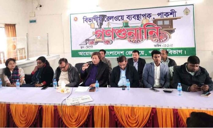 বেনাপোল রেলওয়ে স্টেশন মাস্টার আয়নাল হাসানের সভাপতিত্বে আয়োজিত গণশুনানিতে প্রধান অতিথি হিসেবে উপস্থিত ছিলেন পাকশী বিভাগীয় রেলওয়ে ব্যবস্থাপক লিয়াকত শরীফ।