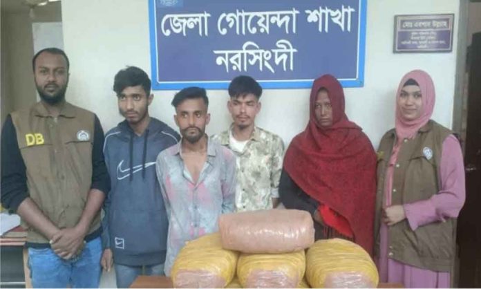 নরসিংদীতে যাত্রী বেশে সিএনজি চালিত অটোরিকশায় বহন করা হচ্ছিল গাঁজা। এমন সংবাদের ভিত্তিতে জেলা গোয়েন্দা পুলিশ ডিবি চেক পোস্ট বসিয়ে চার মাদক কারবারিকে আটক সহ উদ্ধার করা হয় বিপুল পরিমাণ গাঁজা।বৃহস্পতিবার, ২৫ ডিসেম্বর ২০২৫ সকালে অতিরিক্ত পুলিশ সুপার মো. কলিমুল্লাহ বিষয়টি নিশ্চিত করেন।