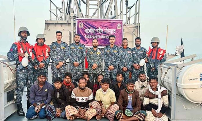 নৌ বাহিনীর জাহাজ বোটটিকে থামাতে সংকেত দিলে বোট গতি পরিবর্তন করে পালানোর চেষ্টা করে। তখন নৌ বাহিনীর জাহাজ শহীদ মহিবুল্লাহ ধাওয়া করে বোটটিকে আটক করে।