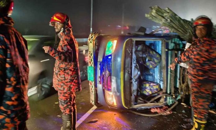 ঢাকা-মাওয়া এক্সপ্রেসওয়ের মুন্সীগঞ্জের শ্রীনগর উপজেলার কামারখোলা রেল ওভারব্রিজের ঢালে পিকাপ ভ্যান দুর্ঘটনায় ৯ জন আহত হয়েছেন। সোমবার,(২৯ ডিসেম্বর ২০২৫) রাত আনুমানিক ৩টার দিকে এ দুর্ঘটনা ঘটে। দুর্ঘটনার পর কিছু সময়ের জন্য মাওয়ামুখী যান চলাচল বন্ধ ছিল।