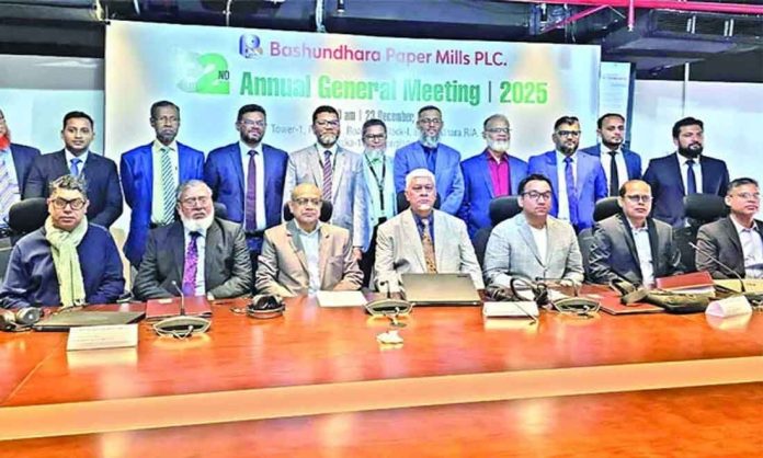 গত মঙ্গলবার সকাল ১১টায় ডিজিটাল প্ল্যাটফরমে অনুষ্ঠিত বসুন্ধরা পেপার মিলস্ পিএলসির ৩২তম বার্ষিক সাধারণ সভায় (এজিএম) এসব তথ্য তুলে ধরা হয়। সভায় সভাপতিত্ব করেন কম্পানির উপদেষ্টা ও বিকল্প পরিচালক এ আর রশীদি। সভায় পরিচালক মণ্ডলীর পক্ষে বিকল্প পরিচালক ক্যাপ্টেন মো. মাহবুবুল আলম ও মো. মাহবুবুর রহমান এবং স্বতন্ত্র পরিচালক মোস্তফা আজাদ মহিউদ্দিন অংশগ্রহণ করেন। এ ছাড়া সভায় যুক্ত ছিলেন প্রধান নির্বাহী কর্মকর্তা মো. মুস্তাফিজুর রহমান এফসিএ, চিফ অপারেটিং অফিসার মির্জা মুজাহিদুল ইসলাম, প্রধান অর্থ কর্মকর্তা মো. কামরুল হাসান, প্রধান অভ্যন্তরীণ নিয়ন্ত্রণ ও কমপ্লায়েন্স কর্মকর্তা মো. ইলিয়াস হোসেনসহ বিধিবদ্ধ নিরীক্ষকগণ এবং কোম্পানির ঊর্ধ্বতন কর্মকর্তারা। সভা সঞ্চালনা করেন কোম্পানি সচিব এম মাজেদুল ইসলাম।