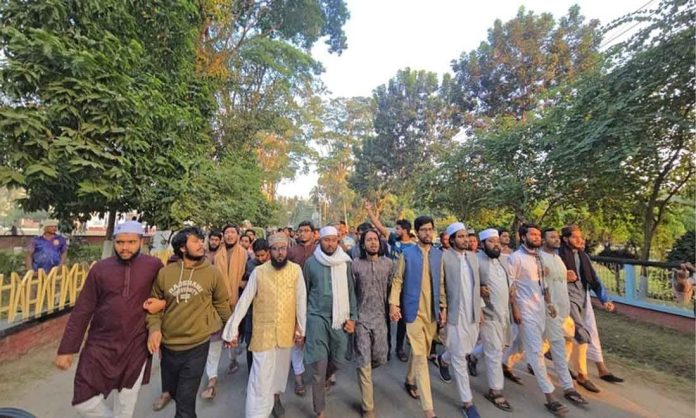 বিক্ষোভ মিছিলটি বিশ্ববিদ্যালয়ের সেন্ট্রাল মসজিদের সামনে থেকে শুরু হয়ে বিশ্ববিদ্যালয়ের গুরুত্বপূর্ণ সড়ক পদক্ষিণ করে তালাইমারীতে ঢাকা-রাজশাহী মহাসড়কে সংক্ষিপ্ত সমাবেশে মিলিত হয়।