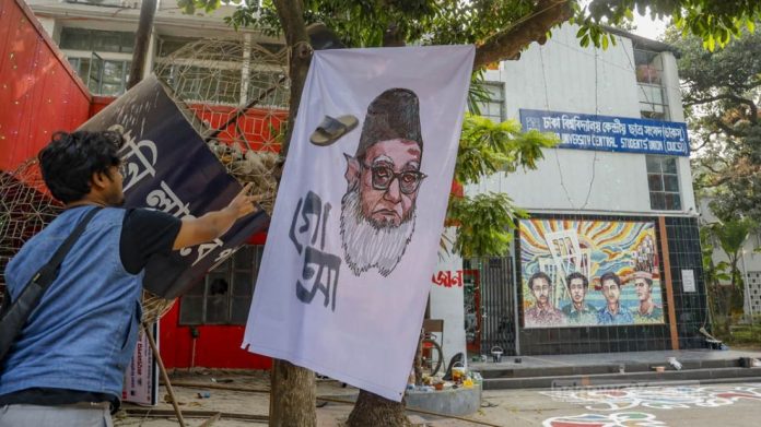 এর আগে দুপুর ১টার দিকে ডাকসু ভবনের সামনে যুদ্ধাপরাধের দায়ে মৃত্যুদণ্ডপ্রাপ্ত গোলাম আযমের ছবিতে জুতা নিক্ষেপ কর্মসূচি পালন করেন একদল শিক্ষার্থী।