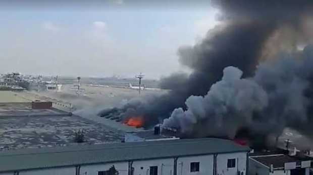 ঢাকার হযরত শাহজালাল আন্তর্জাতিক বিমানবন্দরের কার্গো এলাকায় আগুন লেগেছে। শনিবার বেলা সোয়া ২টার দিকে আগুনের সূত্রপাত হয়, যার ধোঁয়া দূর থেকে দেখা গেছে।