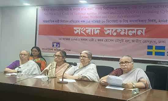 আন্তর্জাতিক নারী নির্যাতন প্রতিরোধ পক্ষ পালন উপলক্ষে মঙ্গলবার, (২৫ নভেম্বর ২০২৫) এক সংবাদ সম্মেলনে বাংলাদেশ মহিলা পরিষদের নেতারা এসব কথা বলেন।