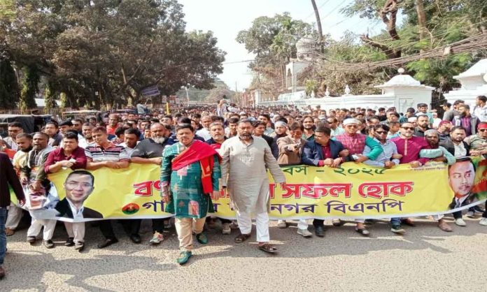 মহান বিজয় দিবস উপলক্ষে গাজীপুর মহানগরীতে মঙ্গলবার,(১৬ ডিসেম্বর ২০২৫) সকালে বর্ণাঢ্য বিজয় রেলি করেছে গাজীপুর মহানগর বিএনপি।