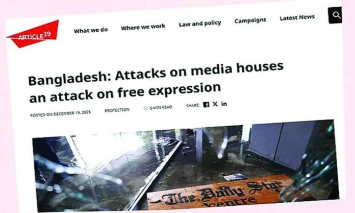 আর্টিকেল নাইনটিনের প্রতিবেদনে বলা হয়, দেশের সর্বাধিক প্রচারিত বাংলা দৈনিক প্রথম আলো এবং দেশের প্রধান ইংরেজি দৈনিক ডেইলি স্টার সাম্প্রতিক সময়গুলোতে রাজনৈতিক, ধর্মীয় এবং সাংস্কৃতিক চরমপন্থি গোষ্ঠীর হুমকির মুখে রয়েছে। ২০২৬ সালের ১২ ফেব্রুয়ারির জাতীয় নির্বাচনের আগে এসব হামলার ঘটনায় বোঝা যাচ্ছে- সাংবাদিক, গণমাধ্যম প্রতিষ্ঠান এবং সাংস্কৃতিক কর্মকাণ্ডের প্রতি শত্রুতা, হয়রানি ও সহিংসতা গভীর ও উদ্বেগজনকভাবে বৃদ্ধি পেয়েছে। এরমধ্য দিয়ে সুরক্ষা দেয়ার ক্ষেত্রে অন্তর্বর্তী সরকারের ব্যর্থতার চিত্র ফুটে উঠেছে।