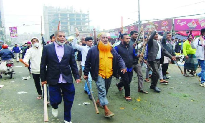 রাজধানীর কারওয়ান বাজারে চাঁদাবাজির প্রতিবাদে ব্যবসায়ীদের মানববন্ধন কর্মসূচিতে অতর্কিত হামলা চালিয়ে মারধর করেছে একদল লোক। সোমবার,(২৯ ডিসেম্বর ২০২৫) বেলা সাড়ে ১১টার দিকে নাম না জানা একদল লোক লাঠিসোঁটা নিয়ে হামলা চালায় বলে তেজগাঁও থানার ওসি ক্যশৈন্যু মারমা জানান। তিনি বলেন, ‘কিচেন মার্কেটের’ ব্যবসায়ীরা চাঁদাবাজির বিরুদ্ধে মানববন্ধন করছিল। তখন একদল অজ্ঞাতনামা লোক হামলা চালায়। ‘এ সময় দুই পক্ষের মধ্যে ধাওয়া-পাল্টা ধাওয়ার ঘটনা ঘটে। পরে পুলিশ গিয়ে পরিস্থিতি নিয়ন্ত্রণে আনে।’