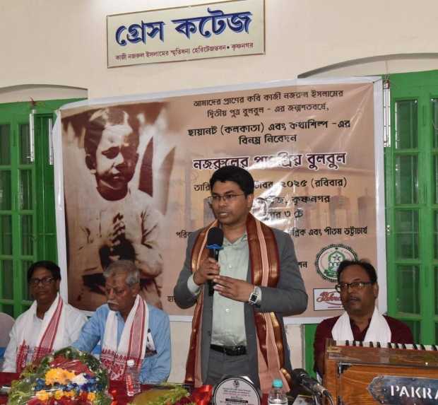 ভারতের পশ্চিমবঙ্গ রাজ্যের কৃষ্ণনগরের গ্রেস কটেজে কবি কাজী নজরুল ইসলামের দ্বিতীয় পুত্র অরিন্দম খালেদ বুলবুলের জন্মশতবর্ষ উদযাপন করা হয়। গতকাল রোববার এ উপলক্ষে বুলবুলের জন্মস্থান গ্রেস কটেজে ছায়ানট (কলকাতা) এবং কথাশিল্প আবৃত্তি চর্চাকেন্দ্র যৌথভাবে ‘নজরুলের প্রাণপ্রিয় বুলবুল’ শীর্ষক উক্ত সাংস্কৃতিক অনুষ্ঠানের আয়োজন করে। এতে প্রধান অতিথি ছিলেন কলকাতায় অবস্থিত বাংলাদেশ উপ-হাইকমিশনের প্রথম সচিব (প্রেস) তারিক চয়ন। বিশেষ অতিথি ছিলেন- নজরুল গবেষক ও শিক্ষারত্নপ্রাপ্ত আবুল হোসেন বিশ্বাস, বুলবুল পত্রিকার সম্পাদক এস. এম. সিরাজুল ইসলাম এবং সুজন বাসর সংগঠনের সম্পাদক ইনাস উদ্দীন।