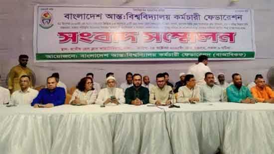 বাংলাদেশ আন্তঃবিশ্ববিদ্যালয় কর্মচারী ফেডারেশন বছরে ১০ শতাংশ বেতন বৃদ্ধিসহ ২১টি দাবি জানিয়েছে। শুক্রবার,(২৪ অক্টোবর ২০২৫) জাতীয় প্রেসক্লাবে এক সংবাদ সম্মেলনে এসব দাবি তুলে ধরেন সংগঠনটির নেতারা। এ সময় চাকরিজীবীদের গ্রেড কমিয়ে ১২টি করে ১:৪ অনুপাতে বেতন কাঠামো প্রণয়নের দাবি করা হয়।