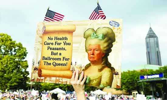 বিক্ষোভকারীদের দাবি, যুক্তরাষ্ট্র কর্তৃত্ববাদের দিকে এগোচ্ছে এবং এখানে কোনো রাজা থাকা উচিত নয়।