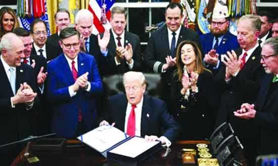 স্থানীয় সময় বুধবার ওভাল অফিসে বিলটিতে স্বাক্ষর করেন ট্রাম্প। বার্তা সংস্থা এএফপির প্রতিবেদনে বলা হয়েছে, নতুন পাস হওয়া বিলে আগামী শরৎ পর্যন্ত সামরিক নির্মাণ, ভেটেরান্স অ্যাফেয়ার্স (সাবেক সেনা সদস্যদের সহায়তা নীতি), কৃষি দপ্তর ও কংগ্রেসের কার্যক্রম পরিচালনায় অর্থায়নের নিশ্চয়তা দেওয়া হয়েছে। সরকারের বাকি দপ্তরগুলোর জন্য তহবিল বরাদ্দ দেওয়া হবে জানুয়ারির শেষ পর্যন্ত।