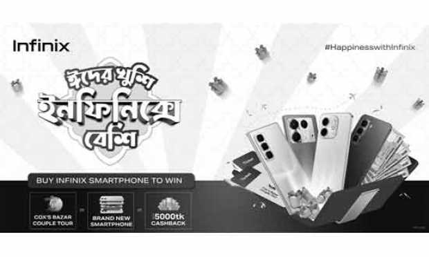 ঈদুল-ফিতর উৎসবকে আরও আনন্দময় করতে প্রযুক্তি ব্র্যান্ড ইনফিনিক্স নিয়ে এসেছে বিশেষ ক্যাম্পেইন ‘ঈদের খুশি, ইনফিনিক্সে বেশি’। ক্যাম্পেইনের আওতায় ইনফিনিক্স দিচ্ছে নিশ্চিত ক্যাশব্যাক, সঙ্গে থাকছে নিশ্চিত উপহার ও বিশেষ সারপ্রাইজ জেতার সুযোগ। ইনফিনিক্সের নির্দিষ্ট মডেলের স্মার্টফোন কিনলে গ্রাহকরা এই অফার পাবেন। ক্যাম্পেইনটি আগামী ১ এপ্রিল পর্যন্ত চলবে।
