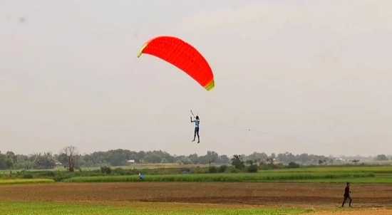 ইউটিউব দেখে দেখে আর স্থানীয় বাজার থেকে কাঁচামাল সংগ্রহ করে বানিয়ে ফেলেন প্যারাগ্লাইডার।