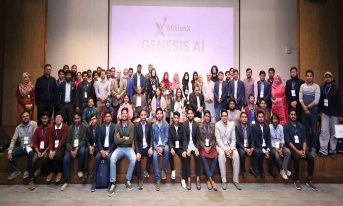বাংলাদেশ কি কৃত্রিম বুদ্ধিমত্তার (এআই) দৌঁড়ে পিছিয়ে পড়বে, নাকি একে ব্যবহার করে নিজেদের উৎপাদনশীলতা ১০ গুণ বাড়িয়ে নেবে? এই প্রশ্নের উত্তর খুঁজতে এবং দেশের ১০ লাখ নাগরিককে ‘এআই-নেটিভ’ হিসেবে গড়ে তোলার লক্ষ্য নিয়ে আত্মপ্রকাশ করলো মিলিয়নএক্স বাংলাদেশ। এই উপলক্ষে শুক্রবার (১৬ জানুয়ারি) রাজধানীর ড্যাফোডিল প্লাজায় ‘ন্যাশনাল এআই বিল্ড এ থন’ ও শনিবার (১৭ জানুয়ারি) রাজধানীর ইউনিভার্সিটি অব এশিয়া প্যাসিফিক (ইউএপি) মিলনায়তনে অনুষ্ঠিত হলো ‘জেনেসিস এআই কনফারেন্স ২০২৬’।