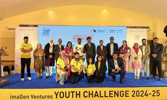 জলবায়ু পরিবর্তনের ঝুঁকি মোকাবিলা এবং তরুণ প্রজন্মের উদ্ভাবনী সম্ভাবনাকে কাজে লাগানোর লক্ষ্যে ঢাকায় অনুষ্ঠিত হলো ‘ইমাজেন ভেঞ্চারস ইয়ুথ চ্যালেঞ্জ ২০২৪-২৫’ এর জাতীয় পর্যায়ের ‘কমিউনিটি সলিউশন পিচ ডে’। ইউনিসেফ বাংলাদেশ এবং জাগো ফাউন্ডেশন ট্রাস্ট-এর যৌথ উদ্যোগে ‘স্বপ্নের সারথি’ প্রকল্পের আওতায় শনিবার গুলশানের লেকশোর হোটেলে এই প্রতিযোগিতার আয়োজন করা হয়।