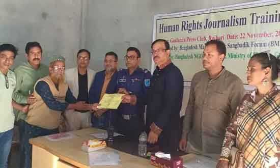 বিএমএসএফ-এর সভাপতি এনামুল কবীর রূপমের সভাপতিত্বে কর্মশালায় বক্তব্য রাখেন গোয়ালন্দ ঘাট থানার ওসি মোহাম্মদ আব্দুল্লাহ আল মামুন, সভাপতি আসজাদ হোসেন আজু, সাধারণ সম্পাদক শহিদুল ইসলাম প্রমুখ। বাংলাদেশ মানবাধিকার সাংবাদিক ফোরামের (বিএমএসএফ) উদ্যোগে এবং বাংলাদেশ এনজিও ফোরামের (বিএনএফ) সহযোগিতায় কর্মশালাটি গোয়ালন্দ প্রেসক্লাবে অনুষ্ঠিত হয়। এতে সেখানকার গণমাধ্যমের ২৫ জন সাংবাদিক অংশ নেন। শেষে বিএমএসএফ’র পক্ষ থেকে প্রশিক্ষণার্থীদের হাতে সনদপত্র তুলে দেয়া হয়।