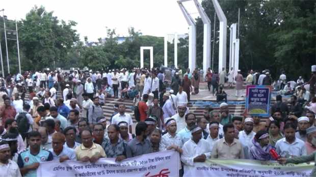 মূল বেতনের ২০ শতাংশ বাড়ি ভাড়া ভাতাসহ বিভিন্ন দাবিতে আন্দোলনরত এমপিওভুক্ত শিক্ষক-কর্মচারীরা টানা তৃতীয় দিনের মতো মঙ্গলবারও কেন্দ্রীয় শহীদ মিনারে অবস্থান কর্মসূচি পালন করছেন। দাবি আদায় না হলে দুপুর ১২টায় ‘মার্চ টু সচিবালয়’ কর্মসূচি পালন করবেন বলে জানিয়েছেন তারা।