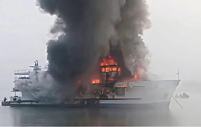 প্রাথমিকভাবে জাহাজ কর্তৃপক্ষ জানিয়েছে বৈদ্যুতিক শর্ট সার্কিট থেকে আগুনের সূত্রপাত হয়।