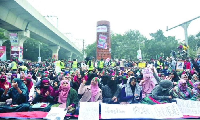 আততায়ীর গুলিতে প্রাণ হারানো ওসমান হাদি হত্যার বিচার চেয়ে গত শুক্রবার বিকেল থেকে শাহবাগ মোড়ে অবরোধ ও অবস্থান কর্মসূচি পালন করে আসছে ইনকিলাব মঞ্চ। গতকাল রোববার রাতে চার দফা দাবি জানিয়ে ওই দিনের অবরোধ কর্মসূচি শেষ করে আন্দোলনকারীরা।