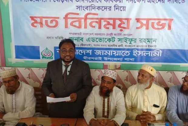 চট্টগ্রামের মিরসরাইয়ে জামায়াতে ইসলামীর আয়োজিত এক মতবিনিময় সভায় ডেপুটি অ্যাটর্নি জেনারেল সাইফুর রহমানকে দলটির সংসদ সদস্য পদপ্রার্থী হিসেবে পরিচয় করিয়ে দেওয়া হয়েছে।