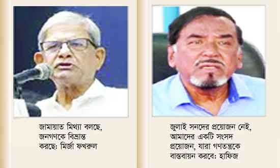 হোমখবররাজনীতিএকাত্তরকে ভুলিয়ে দিতে চব্বিশকে বড় করতে চায় একটি মহল: বিএনপি একাত্তরকে ভুলিয়ে দিতে চব্বিশকে বড় করতে চায় একটি মহল: বিএনপি সংবাদ অনলাইন রিপোর্ট নভেম্বর ১, ২০২৫ 0 সম্পর্কিত সংবাদ গণভোটে না দেয়ার সুযোগ নেই: মির্জা ফখরুল জানুয়ারি ৯, ২০২৬ খালেদা জিয়ার জানাজা বেলা ২ টায়: যোগ দেবেন প্রধান উপদেষ্টা জানুয়ারি ৭, ২০২৬ সাবেক মন্ত্রী ও ১৩ সাবেক সচিবের দেশত্যাগে নিষেধাজ্ঞা জানুয়ারি ৬, ২০২৬ টাঙ্গাইল-৬ আসনে জেলা আওয়ামী লীগ নেতা হিমু প্রার্থী হয়েছেন জেপি থেকে ডিসেম্বর ৩১, ২০২৫ বেগম খালেদা জিয়া আর নেই ডিসেম্বর ৩০, ২০২৫ ট্যাগরাজনীতি Previous articleনির্বাচন পর্যন্ত ‘অপরিহার্য কারণ’ ছাড়া বিদেশ ভ্রমণ নয়: প্রধান উপদেষ্টার কার্যালয়Next articleগাইবান্ধায় চোর সন্দেহে তিনজনকে পিটিয়ে হত্যা সম্প্রতি কৃষি অর্থনীতির চ্যালেঞ্জ ও সম্ভাবনা জানুয়ারি ১১, ২০২৬ মহেশপুরে বিজিবির মানবিকতা ও মাদকবিরোধী অভিযান প্রশংসিত জানুয়ারি ১১, ২০২৬ ভালুকা প্রেস ক্লাব নির্বাচন সভাপতি মাইন উদ্দীন, সম্পাদক আলমগীর জানুয়ারি ১১, ২০২৬ পদ্মায় জেগে উঠেছে বিশাল চর, দখলের আশঙ্কা জানুয়ারি ১১, ২০২৬ হবিগঞ্জে নিখোঁজ ছাত্রের মরদেহ উদ্ধার জানুয়ারি ১০, ২০২৬ আরও খবর Nabil Mahmud - জানুয়ারি ১১, ২০২৬কৃষি অর্থনীতির চ্যালেঞ্জ ও সম্ভাবনা Nabil Mahmud - জানুয়ারি ১১, ২০২৬মহেশপুরে বিজিবির মানবিকতা ও মাদকবিরোধী অভিযান প্রশংসিত Nabil Mahmud - জানুয়ারি ১১, ২০২৬ভালুকা প্রেস ক্লাব নির্বাচন সভাপতি মাইন উদ্দীন, সম্পাদক আলমগীর Nabil Mahmud - জানুয়ারি ১১, ২০২৬পদ্মায় জেগে উঠেছে বিশাল চর, দখলের আশঙ্কা