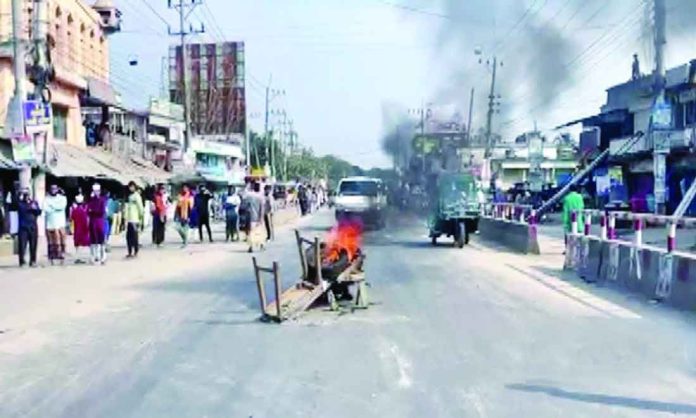 কাটাখালি থানার ওসি মুমন কাদেরী বলেন, বিক্ষোভকারীরা শ্যামপুর এলাকার এক ব্যক্তির চায়ের দোকানের টেবিল-চেয়ার এনে আগুনে ফেলে দেয়। পরে এলাকায় গুজব ছড়িয়ে পড়ে- শ্যামপুরে নাকি ব্যবসায়ীদের দোকানপাটে লুটপাট চলছে।