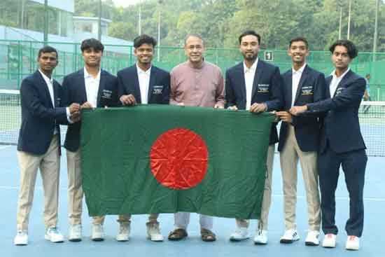 ডেভিস কাপ এশিয়া, ওশেনিয়া গ্রুপ-৫ টেনিস প্রতিযোগিতায় অংশ নিতে বাহরাইন গেল ছয় সদস্যের বাংলাদেশ টেনিস দল। ১৭-২৩ নভেম্বর ইছা টাউনে অনুষ্ঠিত হবে এই আসর। প্রতিযোগিতায় স্বাগতিক বাহরাইনসহ বাংলাদেশ, ব্রুনাই, লাওস, ম্যাকাও, মালদ্বীপ, মঙ্গোলিয়া, মিয়ানমার, নর্দার্ন ম্যারিনা দ্বীপপঞ্জ, তাজিকিস্তান, সংযুক্ত আরব আমিরাত ও ইয়েমেন অংশ নিচ্ছে। বাহরাইনে যাওয়া দলের সদস্যরা হলেন- জারিফ আবরার, জুবিন ওমর, মোহাম্মদ রুস্তম আলী, মো. ইমন ও জাওয়াদ মোহাম্মদ ভূঁইয়া এবং অধিনায়ক তানভীর পাশা।