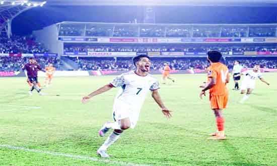 মঙ্গলবার,(১৮ নভেম্বর ২০২৫) কানায় কানায় পূর্ণ ঢাকার জাতীয় স্টেডিয়ামের গ্যালারিতে উচ্ছ্বাসের ঢেউ তোলা মুহূর্তটি এলো দ্বাদশ মিনিটে। মাঝমাঠ থেকে রাকিবকে বল বাড়িয়ে বক্সের দিকে ছুটলেন শেখ মোরসালিন। এরপর ফিরতি পাস পেয়ে টোকা দিয়ে গোলকিপার গুরপ্রিত সিং সান্ধুর দুই পায়ের ফাঁক দিয়ে বল জালে জড়িয়ে মেললেন ডানা। এগিয়ে গেল বাংলাদেশ। এরপর শুরু হলো গোল আগলে রাখার লড়াই। মরিয়া ভারতের বিপক্ষে সেই লড়াইয়ে জিতে বাছাইয়ে প্রথম জয় তুলে নিল বাংলাদেশ।