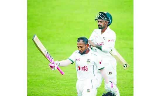 দেশের প্রথম ক্রিকেটার হিসেবে শততম টেস্ট খেলতে নেমে ম্যাচের প্রথম দিন ৯৯ রানে অপরাজিত আছেন ডানহাতি ব্যাটার মুশফিকুর রহিম।