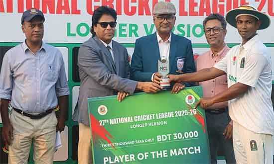 জাতীয় ক্রিকেট লীগের (এনসিএল) পঞ্চম রাউন্ডের শেষ দিনে ঢাকা বিভাগকে হারিয়েছে বরিশাল বিভাগ। অন্য ম্যাচে সেঞ্চুরি করেছেন আল আমিন। কক্সবাজারের মাঠে আগের দিন দুটি নিয়েছিলেন তানভির ইসলাম। শেষ দিনে বাকি পাঁচ উইকেটের সবকটি নিয়ে ধস নামান ঢাকার ব্যাটিংয়ে।